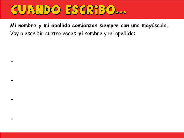 Desarrollamos esta actividad en un archivo de MS PowerPoint, donde los niños deberán escribir su nombres y copiar algunas oraciones para reforzar el uso de los espacios, las mayúsculas, los signos de puntuación y algunas teclas especiales.